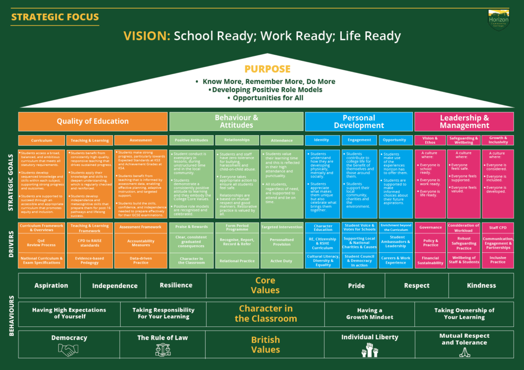 Horizon’s Pupil Premium Progress 8 score for 2024 was -0.31. In comparison, the 2024 national average Pupil Premium Progress 8 score was -0.57. This means that on average, our PP students, progressed at least a ¼ of a grade in 8 subjects compared to other Pupil Premium students.