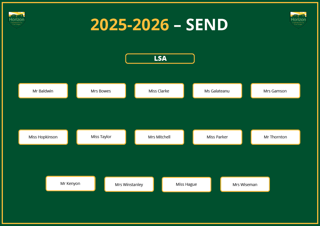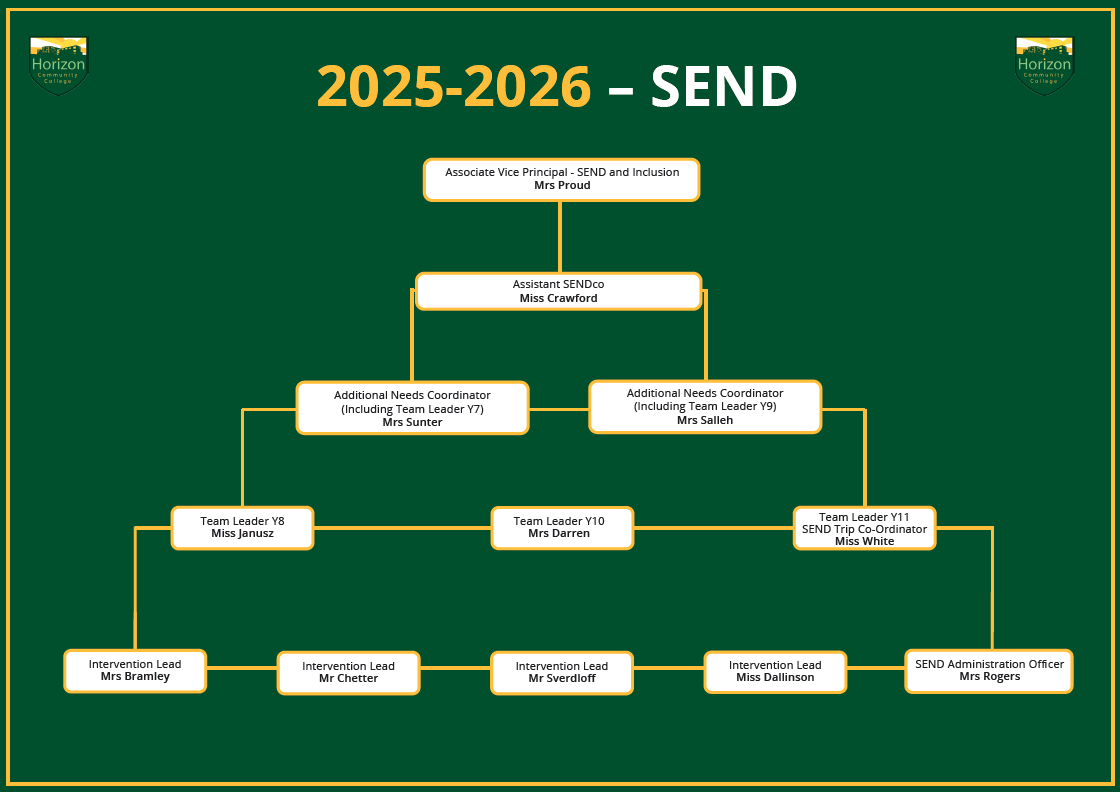 If your child is on the SEN register and you wish to share information, concerns or an update – please contact the relevant SEND Team Leader. Our SEND Team Leaders work closely with School Teams and the SEND Leadership Team to meet the additional needs of students in their year group. They will be more than happy able to support the appropriate action being taken.